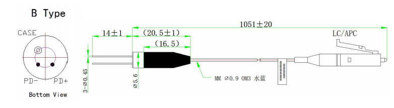 فتودیودهای Pigtailed InGaAs فیبر چند حالته جفت شده، با قطر هسته 50 میکرومتر یا 62.5 میکرومتر قابل انتخاب، و محدوده طول موج تشخیص 900-1700 نانومتر.