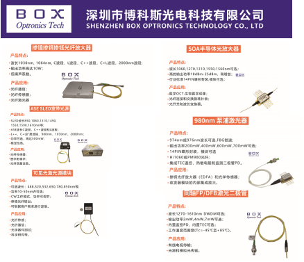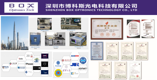 Shenzhen Box Optronics Technology Co., Ltd.(BOX Optronics Tech) یک شرکت با فناوری پیشرفته است که در زمینه ارتباطات فیبر نوری و سنجش فیبر نوری تخصص دارد. این شرکت متعهد به ارائه محصولات و خدمات با کیفیت بالاتر، زمان پاسخگویی سریعتر به مشتریان و کمک به مشتریان برای ایجاد ارزش بیشتر است. این شرکت با توانایی های قوی تحقیق و توسعه، تولید و فروش، و همچنین مهندسان با تجربه توسعه محصول، می تواند محصولات شخصی سازی شده را بر اساس نیازهای مختلف مشتریان تنظیم کند. برای سالهای متمادی، این شرکت متعهد به نوآوریهای فناوری بوده و به طور مداوم فناوریها و استعدادهای پیشرفته را معرفی میکند. گواهینامه های شرکت اعتباری سطح AAA، SME مبتنی بر فناوری، و شرکت ملی با فناوری پیشرفته را دریافت کرده است، و گواهینامه سیستم کیفیت ISO9001 را با موفقیت گذرانده است، به شدت به الزامات سیستم پایبند بوده و کیفیت محصول را به شدت آزمایش می کند.